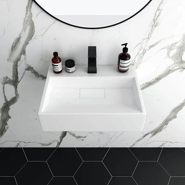 Add a glamorous twist to your bathroom with the Arezzo Wall Mounted or Countertop Stone Resin Basin. The contemporary rectangular shape and clean lines of this Arezzo basin will elevate your space, creating a boutique hotel feel. Designed so you can mount it onto a worktop console or hang it on the wall, this versatile 500mm wide sink offers different installation options to suit your room. The countertop basin is crafted from hardwearing stone resin and is finished in an easy to clean smooth white gloss. It’s supplied with a coordinating hidden waste cover for a sleek look.