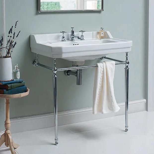 Burlington Edwardian 80cm Basin and Chrome Wash Stand – Various Tap Hole Options