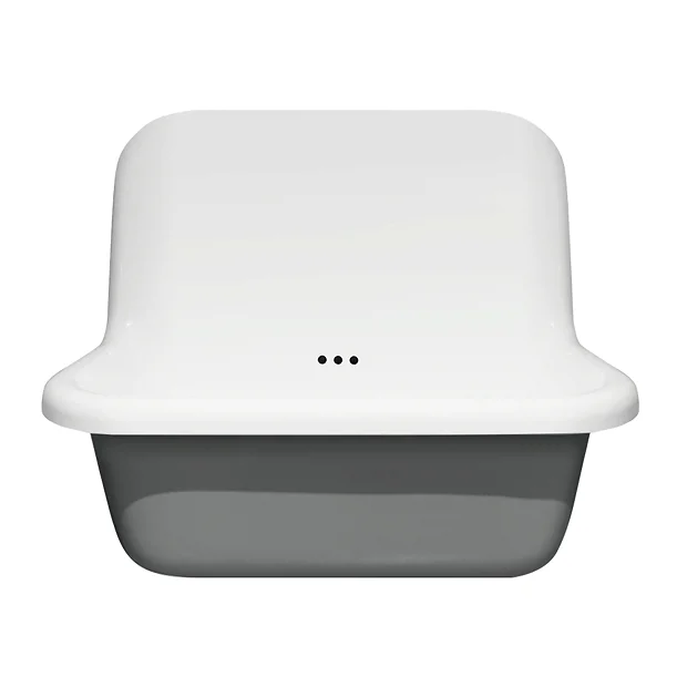 The stunning Chatsworth roll top gloss white with grey exterior basin with integrated backsplash, this fully wall hung basin with its classic look provides you with a handy space-saving solution for your cloakroom or en-suite. The basin has no pre-drilled tap holes; designed for use with wall mounted taps. Ideal for creating a seamless look in the bathroom.