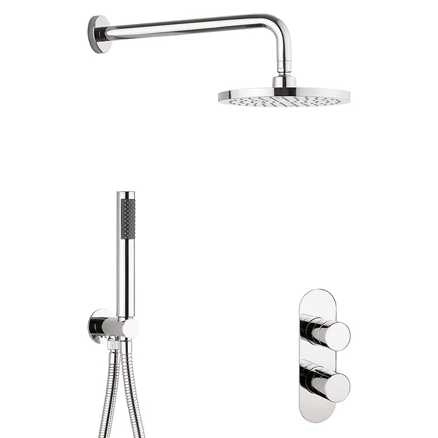 This complete shower bundle from Crosswater will transform any contemporary bathroom with its sleek and trendy design. The bundle consists of a 2 outlet shower valve, 200mm shower head and arm, wall outlet elbow, shower handset and hose. The thermostatic shower valve features an in built anti-scald device to protect you and your family. All Crosswater thermostatic showers use only the highest quality ceramic discs which deliver precise temperature and flow control, even after years of prolonged use.