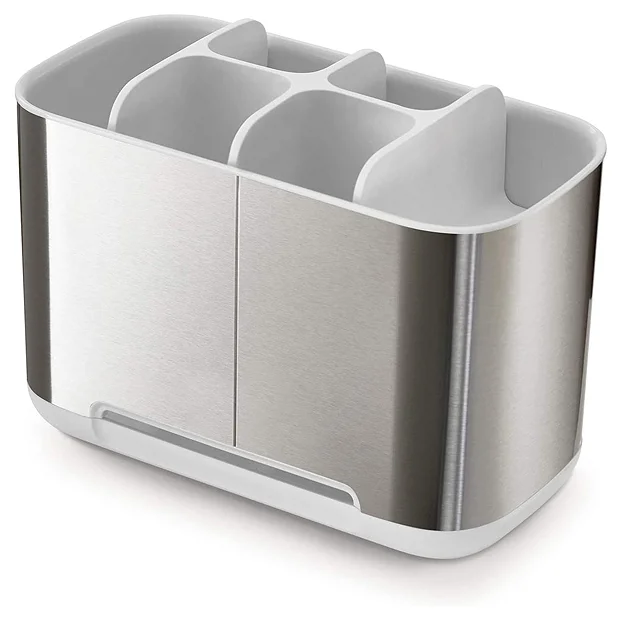 This EasyStore Steel Large Toothbrush Holder is divided into different sections to provide organised storage for a variety of oral care items, such as manual or electric toothbrushes and toothpaste tubes.