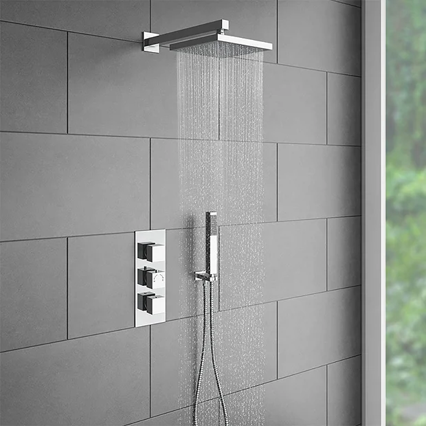 Milan Triple Thermostatic Concealed Shower Valve with Square Shower Head and Handset