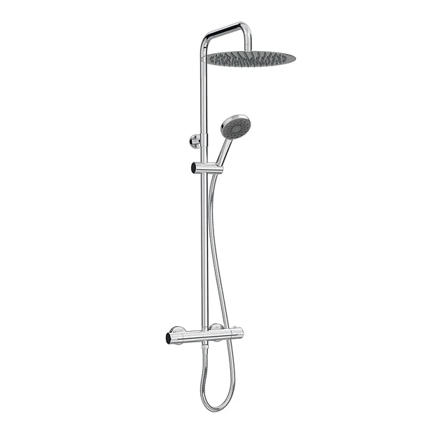 Choose the Monza Modern Round Thermostatic Shower with 300mm large shower head for an invigorating rainfall style showering experience. With a sleek chrome finish that will suit all styles of bathroom, this minimalist mixer shower incorporates a fixed round shower head with the practicality of a lightweight handset for extra flexibility. The easy to use bar valve of this chrome shower features thermostatic controls to keep the water at a consistent temperature, ensuring there is no risk of scalding.
