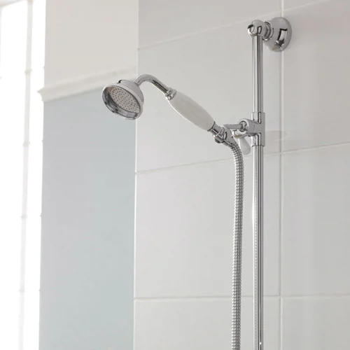 Create a stunning traditional aesthetic in your bathroom and complete it with an invigorating shower experience with the Nuie traditional shower. It includes a 4″ rose shower head and rigid riser handheld shower, giving you a unique wash every time. It offers the perfect balance between beautiful design and incredible build, made with a brass interior for a strong and durable body, and finished in chrome for a shine like no other.