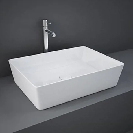 Designed to sit on a worktop, the RAK Feeling rectangular counter top basin will create a stylish and contemporary feel in you bathroom. The basin features no tap holes and overflow and is best paired with a tall basin mixer or wall mounted tap. Made from high quality vitreous china and finished in classic white.
