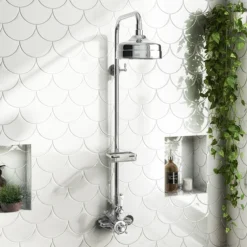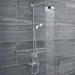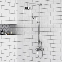 Nuie Traditional Exposed Thermostatic Triple Shower Valve Inc. Riser, 4″ Rose & Slide Rail Kit