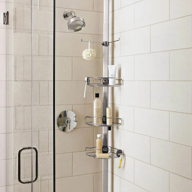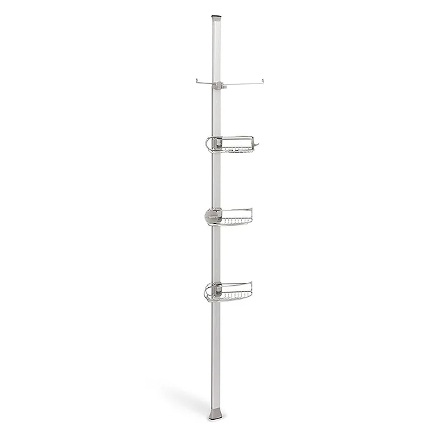 Keep your shower or bath space clutter free with the simplehuman Tension Shower Caddy. No tools are needed to install as the reinforced aluminium pole features a high-compression spring and grippy rubber feet that fits the caddy securely between your floor and ceiling. The wire frame shelves are adjustable sliding up and down for space-efficient storage. It’s stainless steel and anodised aluminium construction makes it tough, robust and rust resistant.
