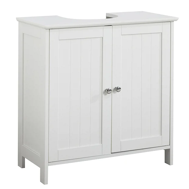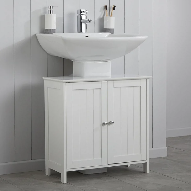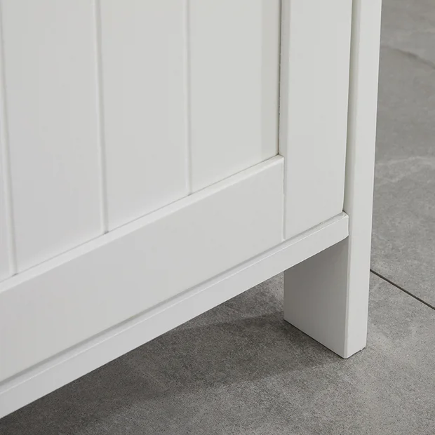 Add traditional design to your bathroom with the matt white under basin storage cabinet, features classic styling with a tongue-and-groove design. The under basin cabinet is a great space saver for the smaller bathroom or just to keep things neat and tidy! Provides generous storage space for your toiletries, helping to keep your bathroom clutter free. This under basin storage unit has internal shelving to store your bathroom essentials.